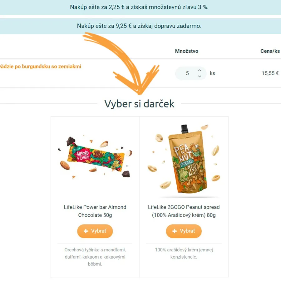 Nakúp nad 60 € a dostaneš možnosť voľby - v košíku si vyber buď rovnakú orechovú tyčinkualebo orechový krém LifeLike 2GOGO Peanut spread (100% Arašidový krém).